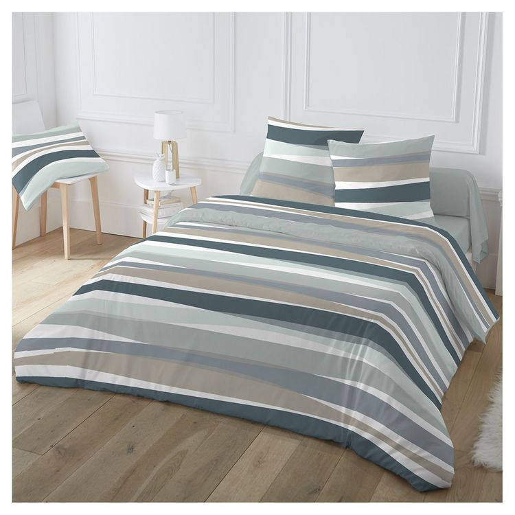 De gros ???? ACTUEL Parure Housse De Couette En Polycoton 52 Fils Motifs Rayures REMI ????