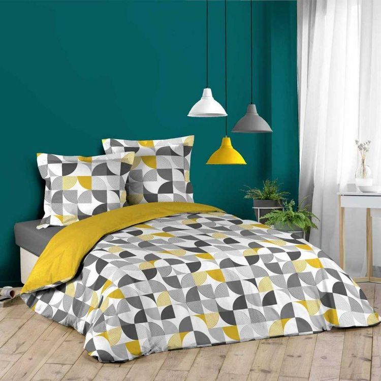 Meilleur prix ???? Paris Prix Parure De Lit 3 Pièces Rythmo 260x240cm Jaune ????