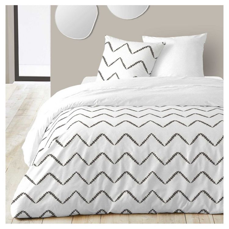 Vente flash ???? Parure Housse De Couette En Coton 57 Fils Motif Géométrique ZIGGY ????