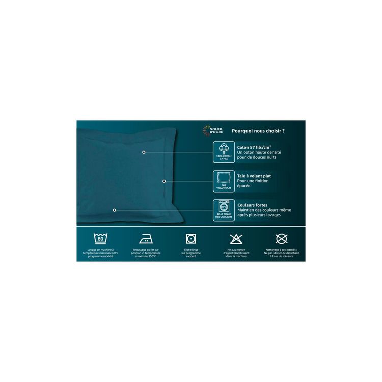 Remise ???? Soleil D’ocre Taie D’oreiller En Coton 57 Fils 50×70 Cm UNI Blanc, Par Soleil D’ocre ????